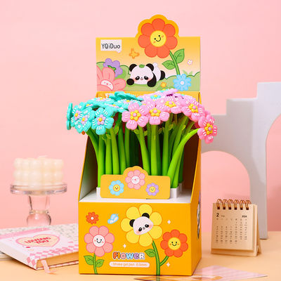 พันดาปากกาดอกไม้ สีชมพู สีบอลปากกาครีเอทีฟ สีเหลว ดํา 0.5 มิลลิเมตร เจล Ink Rollerball Pen สําหรับเด็กผู้หญิง ผู้หญิง สินค้าตกแต่งสํานักงานและโรงเรียน