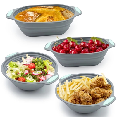 รวมชามแบบพับได้รูปไข่และกลม (9.5 นิ้ว) - เตาอบและเครื่องล้างจานปลอดภัยของขวัญสำหรับช่างฝีมือ